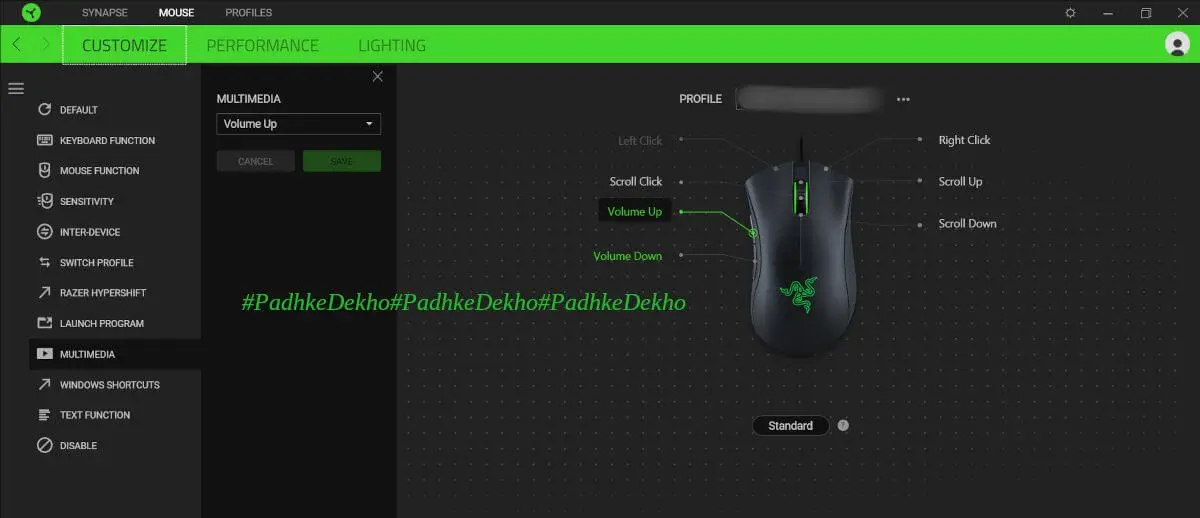 #4 5 Programmable Buttons: On Razer DeathAdder Essential, you get 5 programmable buttons; for that, you will need the application installed on your PC. You can customize the side buttons for any purpose be it copy or paste. More about it in the user experience section below.
